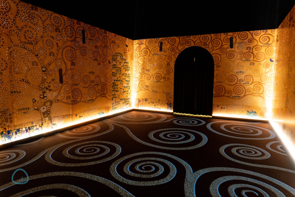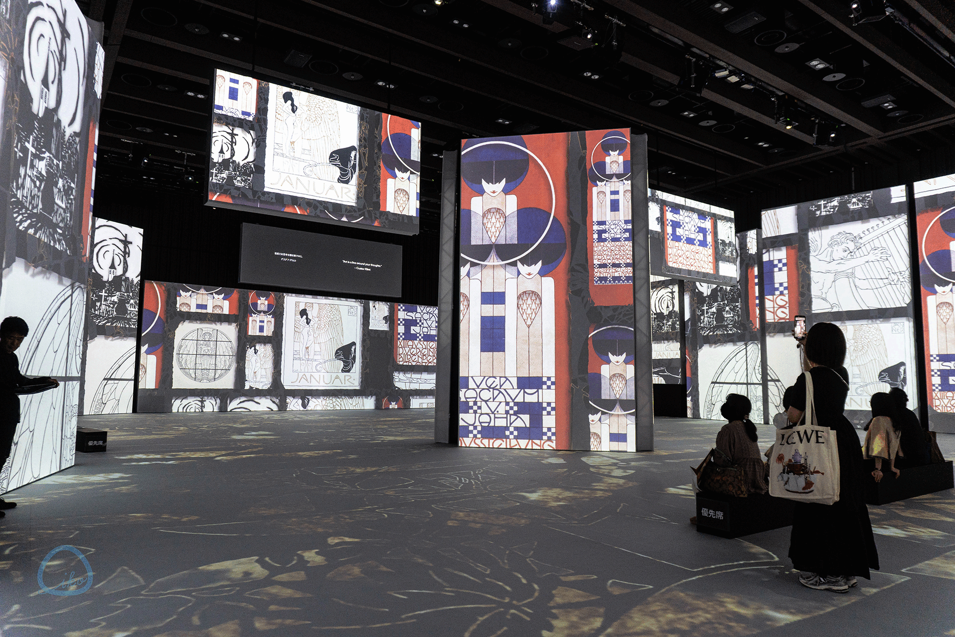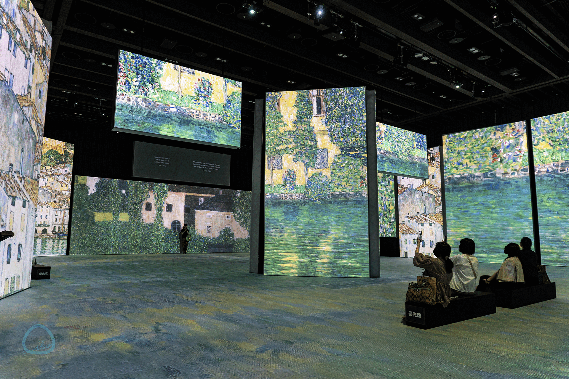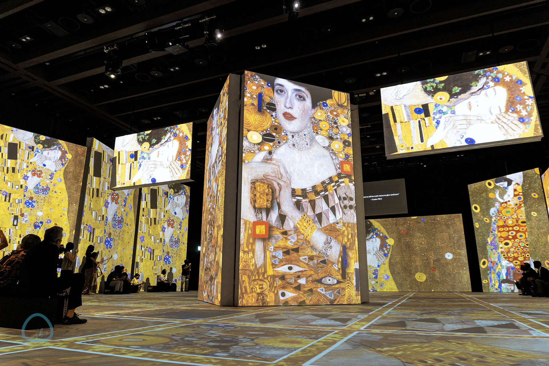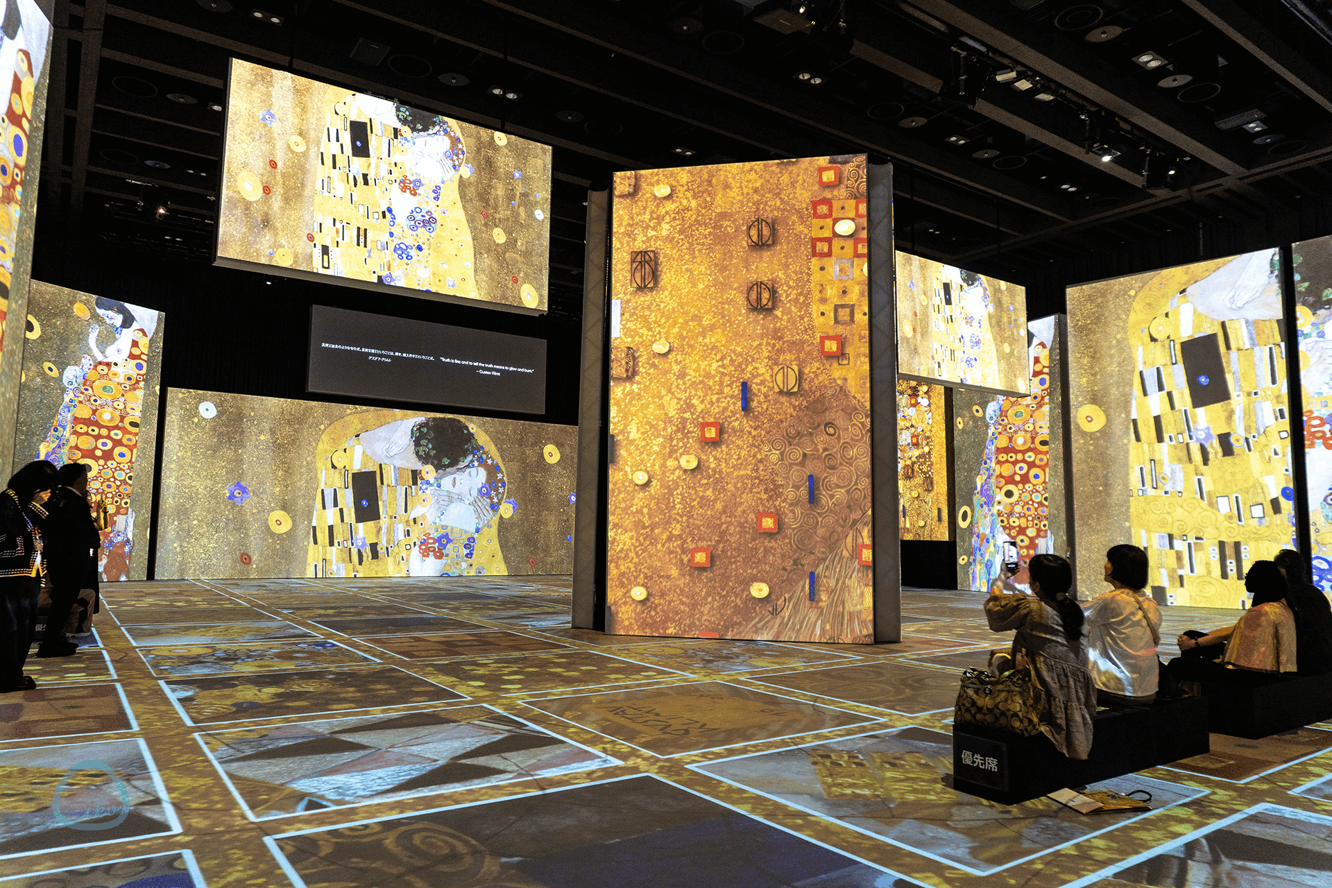 同社は、映像と高水準のサラウンドシステムを融合させた、どんな展示会場でも臨場感のある映像音楽体験ができる独自システムを有しており、最新作『クリムト・アライブ』でもその威力が遺憾なく発揮されています。