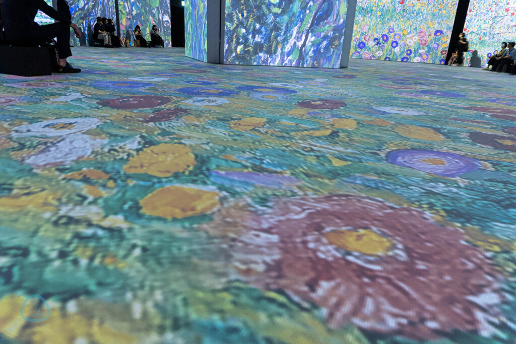 単に映し出すだけでなく、次々とめまぐるしく映像が変わるほか、会場となる空間全域で画家(作品)の世界観にどっぷりと浸かる没入型展覧会です。