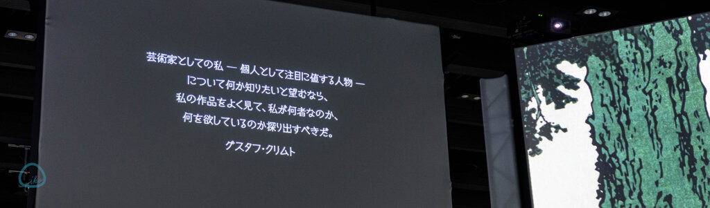 セクションの合間などに時折投映される、クリムトの言葉にも注目あれ。