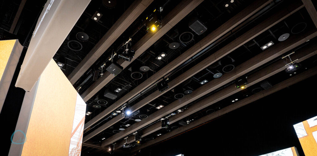 天井に設置されるプロジェクターの数は非公開とのことですが、ザッと数えるだけでも数十台。どの角度からでも楽しめるよう、無数の機材が投入されています。