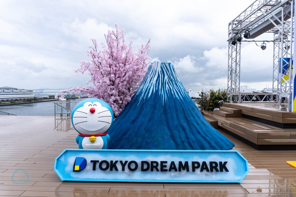 無料エリアには、日本のシンボルといえる「富士山」と「桜」が、ドラえもんとコラボ。フォトスポットになっています!