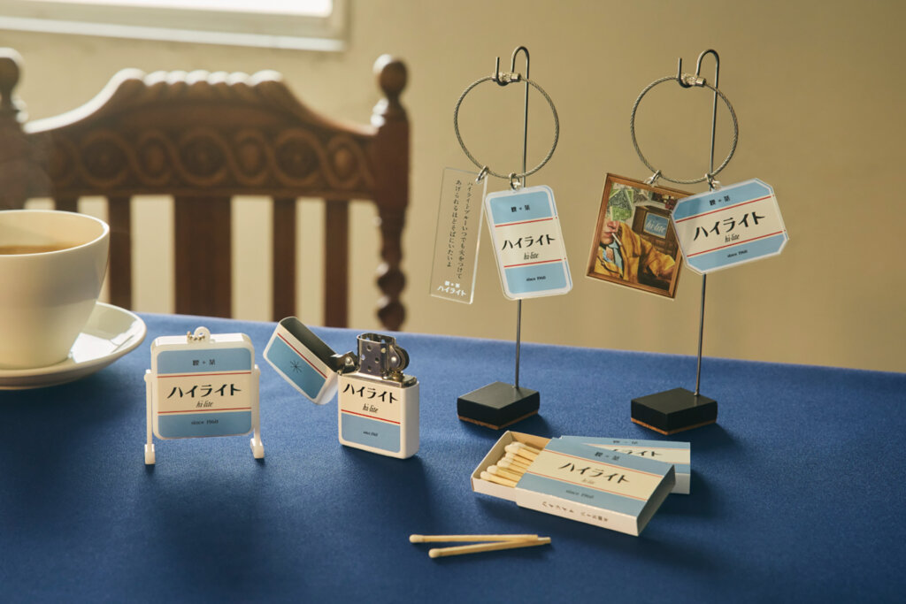 店内装飾の一部をミニチュア化した特製キーホルダー(全3種)をガチャで販売。「喫茶ハイライト」の看板をモチーフにした記念ジッポーの販売*もあります!