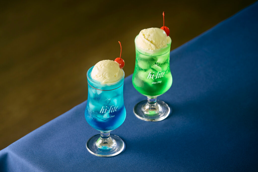 店内では、「ハイライト」と「ハイライト・メンソール」のパッケージカラーをイメージした特製クリームソーダを有料で提供するほか……