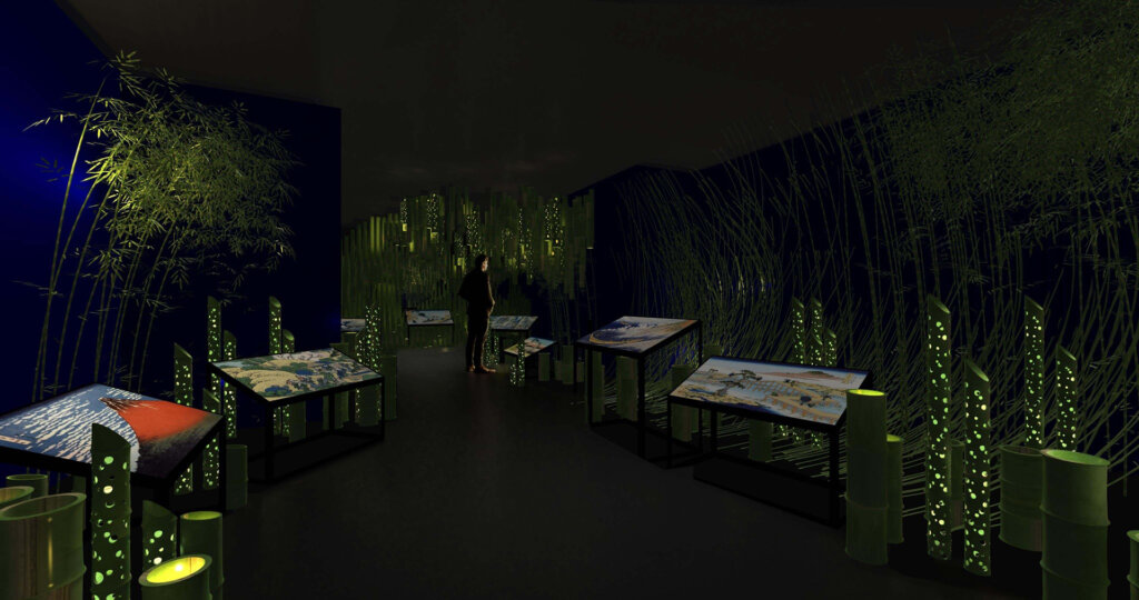 江戸の浮世の時代にタイムスリップするような感覚を、“カラダ”で味わいながら作品の世界に没入できる点がポイントで、ソニーが開発した最新技術を積極投入。映像に合わせた「音」「風」の演出に加え、なんと足元からは「振動」を感じながら鑑賞できるという、これまでのイマーシブイベントとなっています!