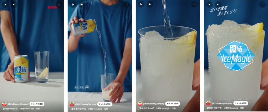 家電メーカー、シャープが開発した「アイススラリー冷蔵庫」にキリンのチューハイ「氷結®」を注ぐと、その瞬時からドリンクが凍り始め、あっという間にフローズン状態に。