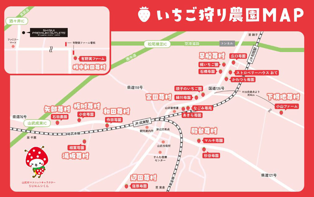 ちなみに山武市は、いちご狩りスポットとして関東最大級規模を誇る有名エリア。市内を走る国道126号線は、別名「ストロベリーロード」と呼ばれるほどなんです!