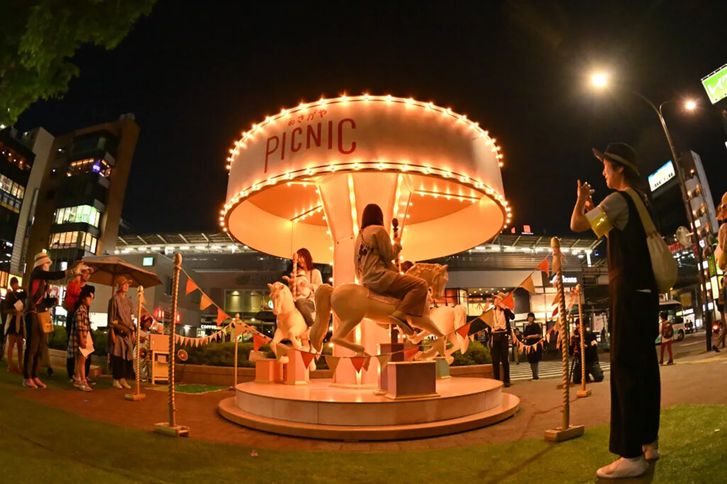 さらに! 駅前にメリーゴーラウンドが登場! 子どもだけでなく大人も利用できるほか、夜は幻想的にライトアップと昼夜で楽しめちゃいます!