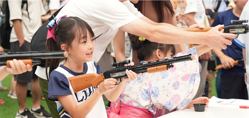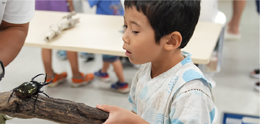 夏祭り定番である「カブト・クワガタふれあい展」や、射的やスーパーボールすくいが楽しめる縁日、内野エリアでの野球体験などもあります。
