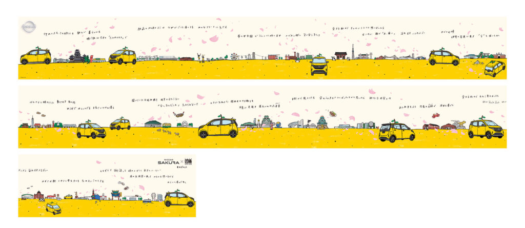 さらに、会場内10カ所に隠された「ゆずサクラ」のステッカーを探す体験イベント「隠れゆずサクラを探そう!」のほか、日産グローバル本社 2階の通路に「ゆずサクラ」の特別ビジュアルが掲出されたりといろいろ。