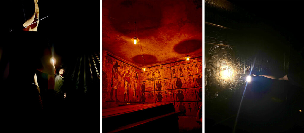 照明を落とすなど、通常営業時とは異なる館内をランタンを片手に探索するイベントで、館内各所には「ツタンカーメンにまつわる7つの謎」を解き明かす謎解きに挑戦しながら楽しむなど、通常営業時にはない体験が可能です。